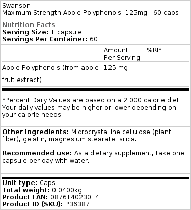Æblepolyfenoler – Πολυφαινόλες Μήλου, 125 mg · 60 κάψουλες