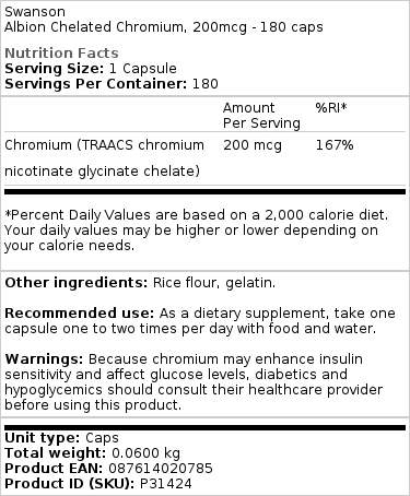 Swanson – Albion Kelateret Chrom, 200 mcg – 180 kapsler