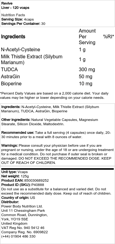 H Revive epilégei proskektika ta symplhrwmata diatrofhs poy prosferontai, me stoxo na ypósthrizoyn énan isorropimenon kai ygihnh tropon zwhs. O Liver – 120 vcaps apotelei mia exairetikh epilogh gia osous anazhtoun mia fysikh lysi sto plaisio mias aktinobolhs kathimerinotitas.