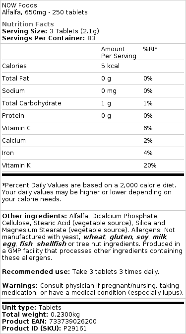 Dette er en stor størrelse, der kan holde i længere tid. Du skal være hurtig med at bestille den, da den er udsolgt hele tiden. Alfalfa er som en alkalizer for kroppen. Ud over at det er godt for leveren, kan det stoppe kræfttilførsel af sukker, hvis du fokuserer på at holde dig alkalisk. hvis du har galde- og leverproblemer, er dette et must at tage. En ting, jeg skal tilføje, er, at tabletterne er svære for mig at sluge. Jeg er ikke sikker på, hvad det handler om tabletter i pulverform, jeg kan blive kvalt af dem. Kapslerne fra et andet mærke er større, og jeg kan sluge 2 – 3 af dem, men alligevel har jeg problemer med tabletter. mærkelig