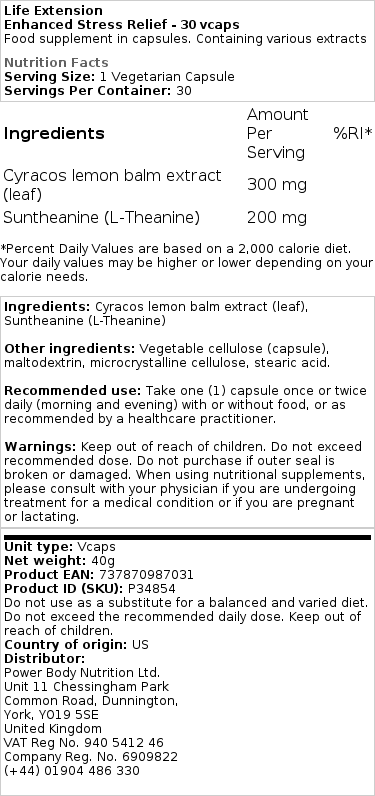 Tilsætningen af L-theanin til citronmelissen booster virkelig dette produkts stressaflastende effekt. Fantastisk til de tidspunkter, hvor du har brug for lidt støtte.