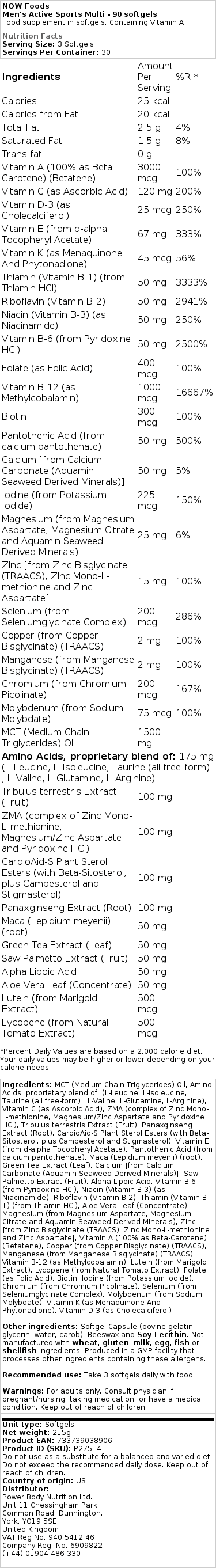 Ανακαλύψτε το “Men’s Active Sports Multi – 90 softgels”, ένα προηγμένο διατροφικό συμπλήρωμα από τη NOW Foods, σχεδιασμένο ειδικά για άνδρες που ασχολούνται με αθλητικές δραστηριότητες. Με βάση τους υψηλής ποιότητας συστατικά και τη φόρμουλά του, είναι ιδανικό για όσους επίδοξους αθλητές επίζουν ν’ αυξήσουν τη φυσίκή τους και ν’ αποδώσουν κάθε μέρa.