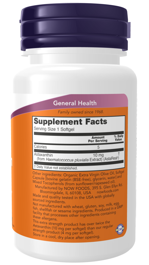 Ανακαλύψτε τη δύναμη του Astaxanthin Extra Strength, 10mg – 30 softgels, ένα προηγμένο διαιτητικό συμπλήρωμα από τη NOW Foods, ιδανικό για όσους επιθυμούν να υποστηρίξουν τη φυσιολογική λειτουργία και ευεξία τους με φυσικό τρόπο.