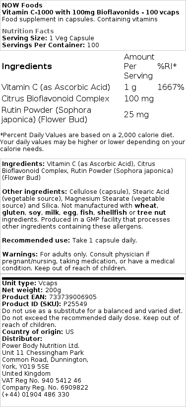 Brand – Βιταμίνη C-1000 με 100mg Βιοφλαβονοειδή – 250 κάψουλες