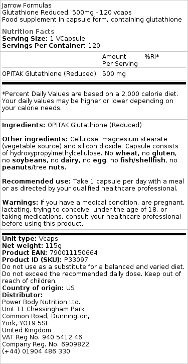 Min Natural Health Doctor informerer mig om, at glutathion er et lille peptidmolekyle, der består af tre aminosyrer: cystein, glutaminsyre og glycin. Det produceres af hver celle i kroppen, med særligt høje niveauer i leveren. Glutathion er afgørende for en sund immunsystemfunktion og er nødvendig for korrekte afgiftningsprocesser. Det spiller også en kritisk rolle i kroppens forsvarssystem mod oxidativt stress ved direkte at neutralisere frie radikaler, samt ved at opretholde aktiviteten af vitamin C og E. Vores krop har brug for omkring 300 mg mad fremstillet glutathion dagligt for at holde trit med alle kravene til frie radikaler produceret ved energiproduktion og for at beskytte mod miljøgifte. Jeg spiser masser af avocadoer – høj i naturlig glutathion – og supplerer med Jarrow’s Glutathione Reduced dagligt. God værdi, fremragende produkt, stærkt anbefalet.