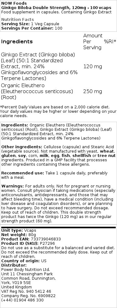 Product: Ginkgo biloba Double Strength, 120mg – 200 vcaps
