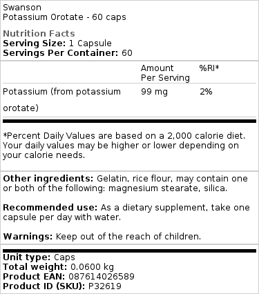 Made in the USA, to Potassium Orotate apo tin swanson einai mia dynami gia tin kathe imera sas!</p