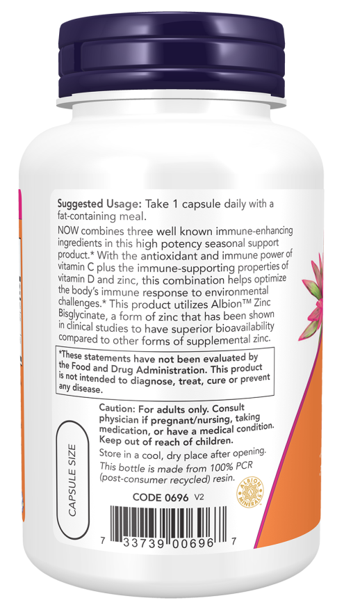 Ανακαλύψτε το C-1000 Zinc & D-3 – 100 vcaps, ένα προηγμένο διατροφικό συμπλήρωμα από τη NOW Foods, σχεδιασμένο να υποστηρίζει τη φυσιολογική λειτουργία του ανοσοποιητικού συστήματός σας και να βελτιώνει τη γενική ευεξία.