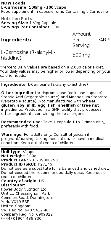 - Δοσολογία: 500 mg L-Carnosine ανά κάψουλα.