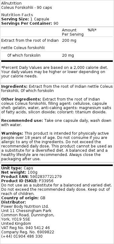 Allnutrition – Coleus forskohlii – 90 κάψουλες