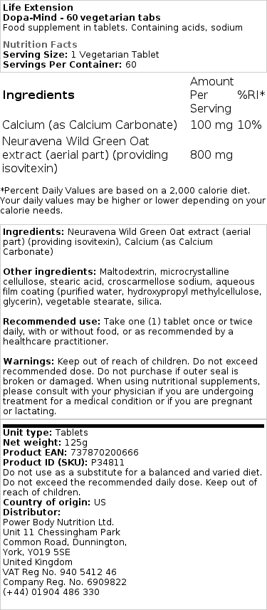 Ανακαλύψτε το Dopa-Mind, ένα προηγμένο διατροφικό συμπλήρωμα από τη Life Extension, σχεδιασμένο για να υποστηρίζει τη φυσική ευεξία και νόηση. Με 60 δισκία και φυτική σύνθεση, είναι ιδανικό για vegetarians.