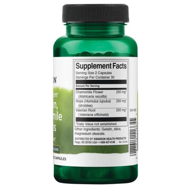 Ενισχύστε την καθημερινή σας ευεξία με το Full Spectrum Valerian, Chamomile & Hops από τη Swanson. Αυτός ο φυσικός συνδυασμός βοτάνων προέρχεται από υψηλής ποιότητας πηγές και είναι σχεδιασμένος για να υποστηρίζει μία ισορροπημένη διάθεση και ν’ αποβάλλουμε φυσικά τους καθημερινούς σωματικoύs και ψυχoλoγiκoύs εφήβουs.