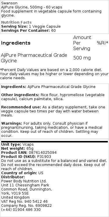 Glycin og andre ingredienser, der kan hjælpe med proteinsyntese, bliver mere og mere populære, og denne Swanson ajipure-version er den bedste. Jeg har brugt glycin adskillige gange for at se, hvordan det påvirker min muskelvækst, og indtil videre føler jeg personligt, at juryen stadig er ude, men jeg ved, at forskningen siger noget andet. Giv det og prøv og se, hvordan det hjælper dig, hvis det ikke påvirker muskelvæksten, er det i det mindste en fremragende antioxidant 🙂