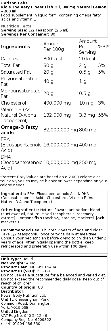 Ανακαλύψτε το Kid’s The Very Finest Fish Oil, 800mg Natural Orange – 200 ml, ένα υψηλής ποιότητας συμπλήρωμα διατροφής από τη Carlson Labs. Προσφέρει φυσική γεύση πορτοκάλι και είναι ιδανικό για παιδιά, συμβάλλοντας σε μία ισορροπημένη δίαιτα.