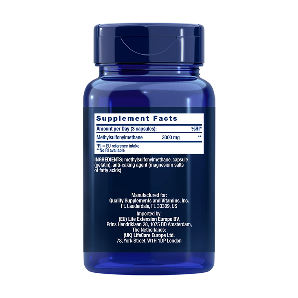 Opdag Life Extension MSM, 1000 mg, præsenteret i en pakke med 100 kapsler.Dette produkt er fremstillet med fokus på høj kvalitet og renhed.