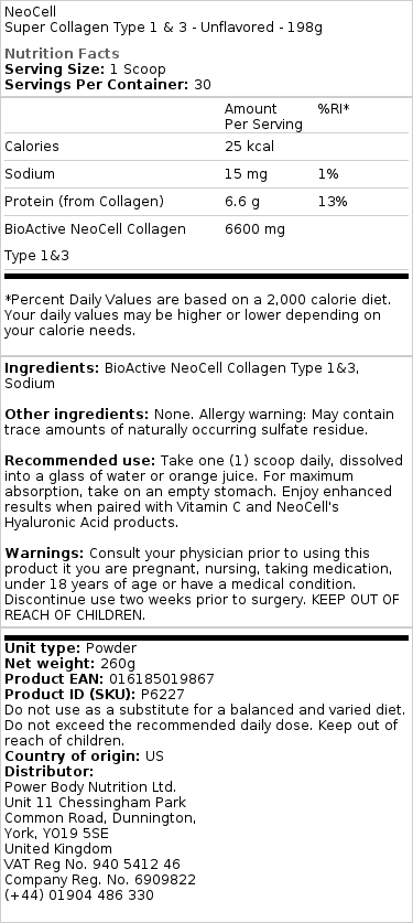 Neocell Collagen elsker og altid tilfreds kunde. ugentlig køber jeg neocell til mig og mine venner. Endnu en bedste kvalitet af neocell i pulver uden smag med simple ingredienser god sammensætning til alle, der har mangel på kollagen ældning af led, rynker, tør hud, knusende knæ og faldende hår. Fordelagtigt, hvis det tilføjes til din kost, er det neutralt i smagen, men med konsistens vil du se så meget forbedring i, hår, hud, led, og det kan selvfølgelig øge sund kollagendannelse til vores krop for at gøre den yngre og strålende hud. Fantastisk emballage forbyder også fugt at gå ind.