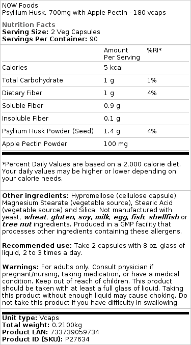 Jeg har taget NOW Foods Psyllium Husk Caps i et par uger nu, og jeg er imponeret over kvaliteten af ingredienserne. Dette kosttilskud er spækket med fibre, som er fantastisk til tarmens sundhed og regelmæssige afføringer. Det er også med til at holde tarmkanalen sund. Jeg har bemærket en forbedring i min fordøjelse siden jeg startede dette tilskud. Jeg anbefaler stærkt at prøve det for sin naturlige løsning til fordøjelsessundhed.