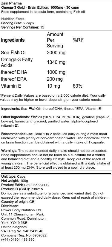 Zein Pharma – Omega-3 Gold – Brain Edition, 1000mg – 30 kapsler