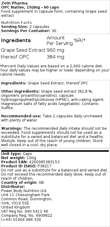 OPC Native – Ιθαγενές OPC – 192mg · 60 κάψουλες