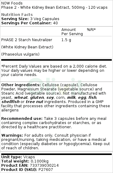 Phase 2 – Εκχύλισμα Λευκού Φασολιού, 500mg – 120 κάψουλες