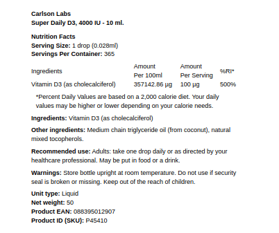 Продукт: Super Daily D3, 4000 IU – 10 ml.